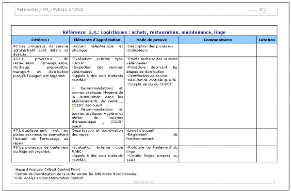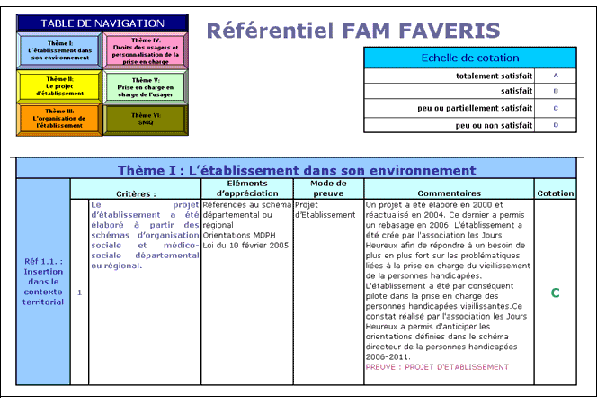 Figure 7. Extrait du référentiel qualité du FAM