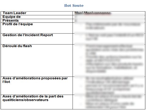 Figure 19 : Exemple du compte-rendu de l’observation d’une unité de production