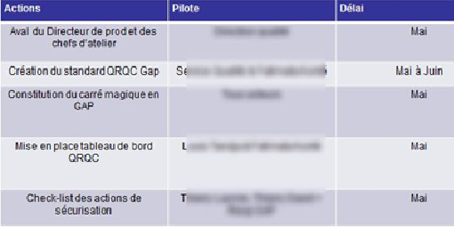 Figure 30 : Agenda d’actions à solder pour la mise en place du QRQC