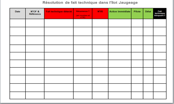 Figure 37 : Fiche Résolution de fait technique dans la ligne de production