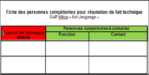 Figure 39 : fiche des personnes compétentes pour la résolution de fait technique