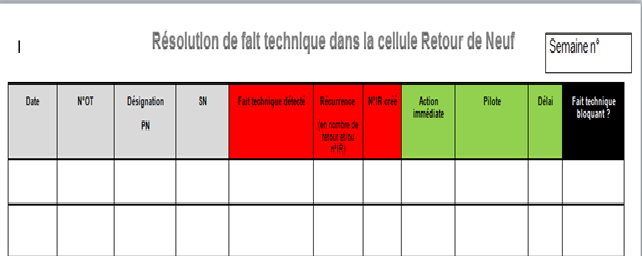 Figure 42 : Extrait du tableau de bord QRQC cellule RN