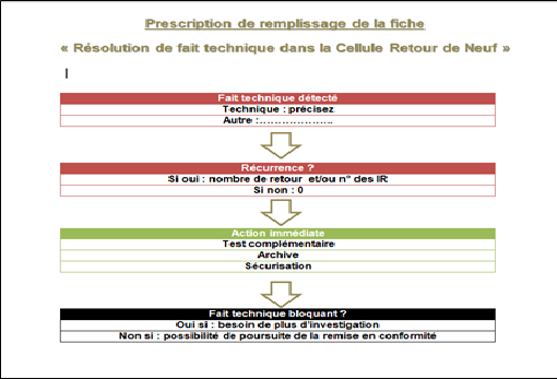 Figure 43 : Fiche méthodologique pour remplir la fiche Résolution de fait technique dans la Cellule Retour de neuf