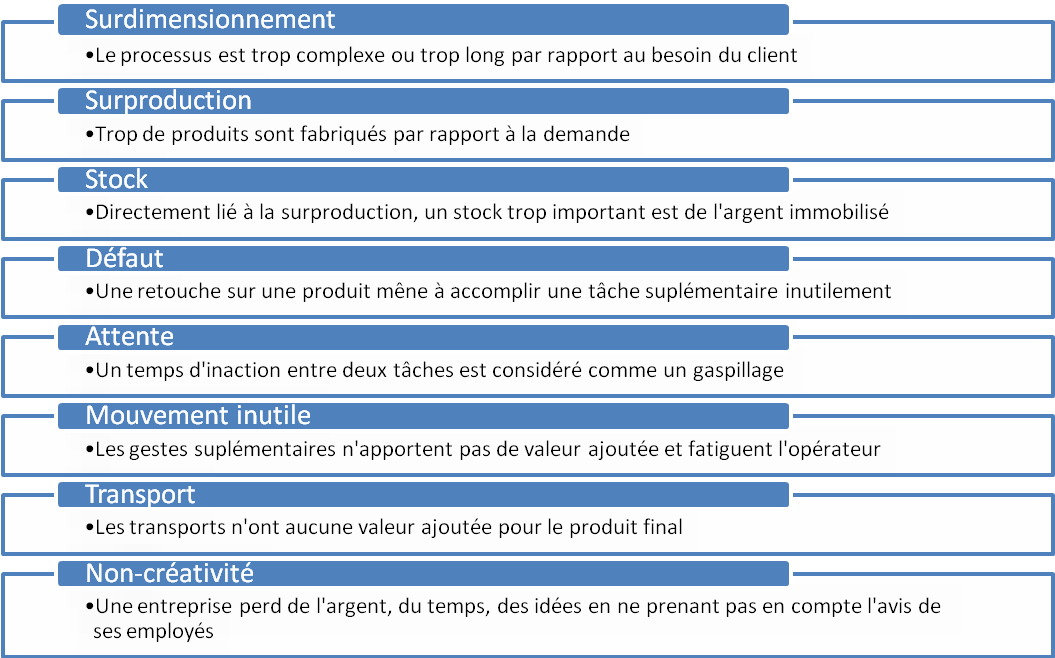 réduction de ses gaspillages. 8 types de gaspillages peuvent être